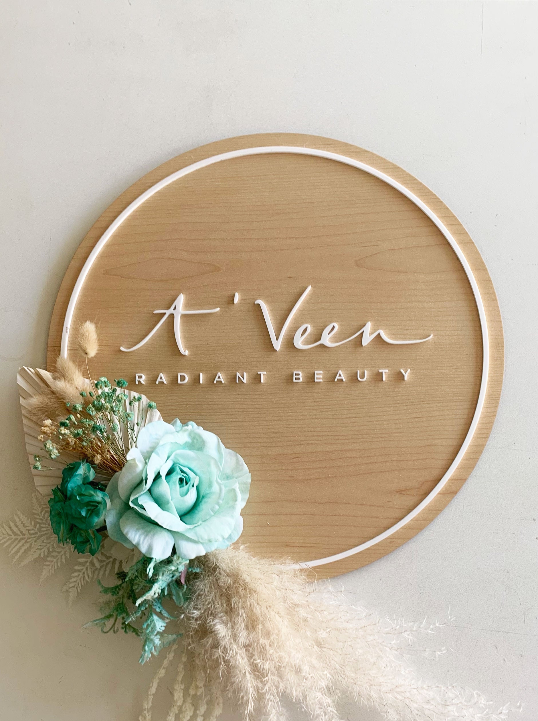 Enhance your office, shopfront or market space with our luxurious acrylic signage with flowers to match your branding.