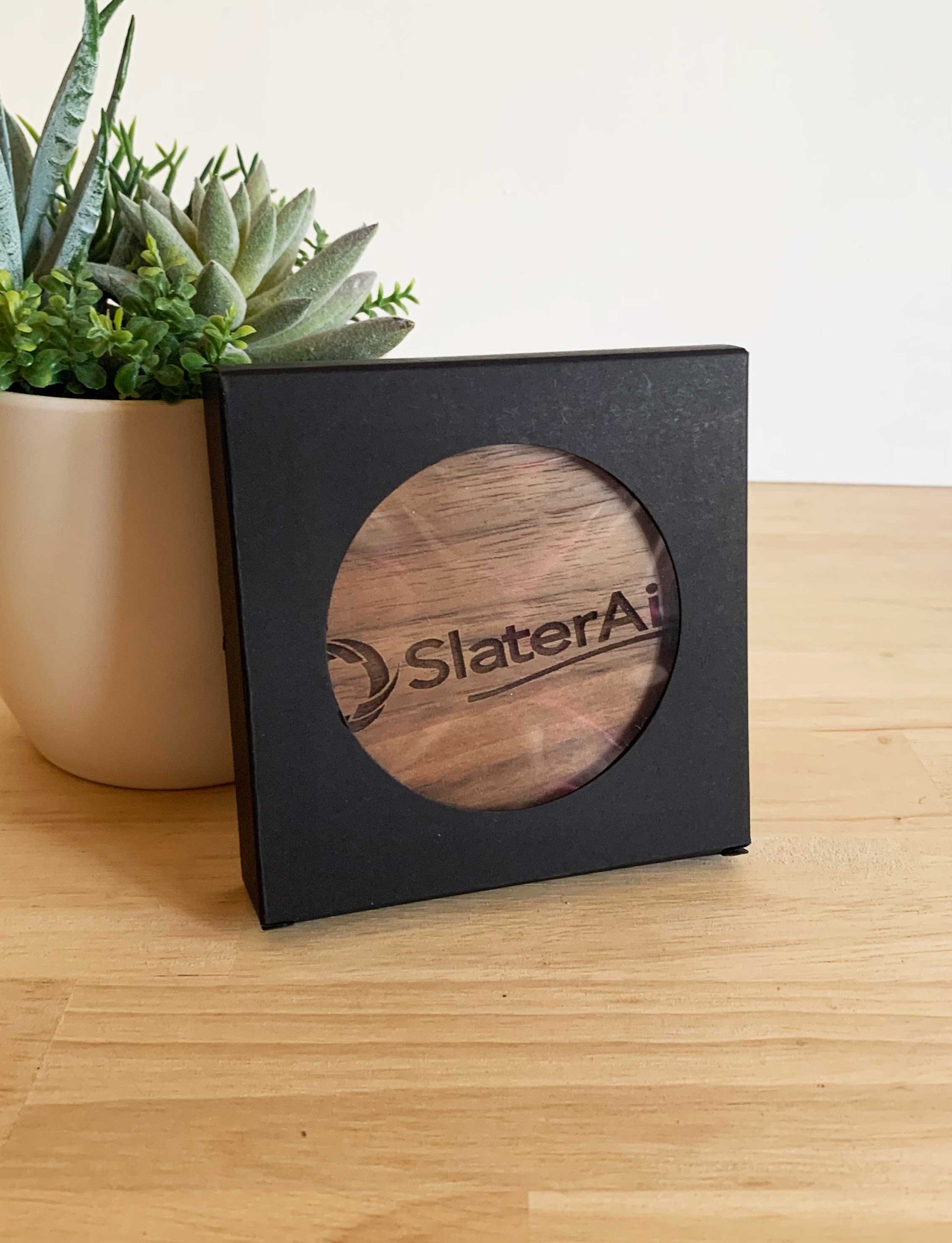 What better way to say thank you than branded corporate giftware. Blow your customers, colleagues and friends away with these Walnut timber branded coaster sets. These come in a set of 4, packaged in a beautiful box with a clear plastic window. Please email us if you would like the option of a 2 set instead.