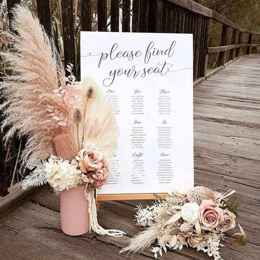 We have two options for displaying your seating plan. These sit perfectly on our easels or look amazing hanging in either our white or gold hanging frames. **Please let us know if you intend to hang the sign in one of our frames as we need to trim the edges just slightly as our frames only just fit A1 width, a bit too snug if you get what we mean. We also need to add holes if you intend to hang the board.**