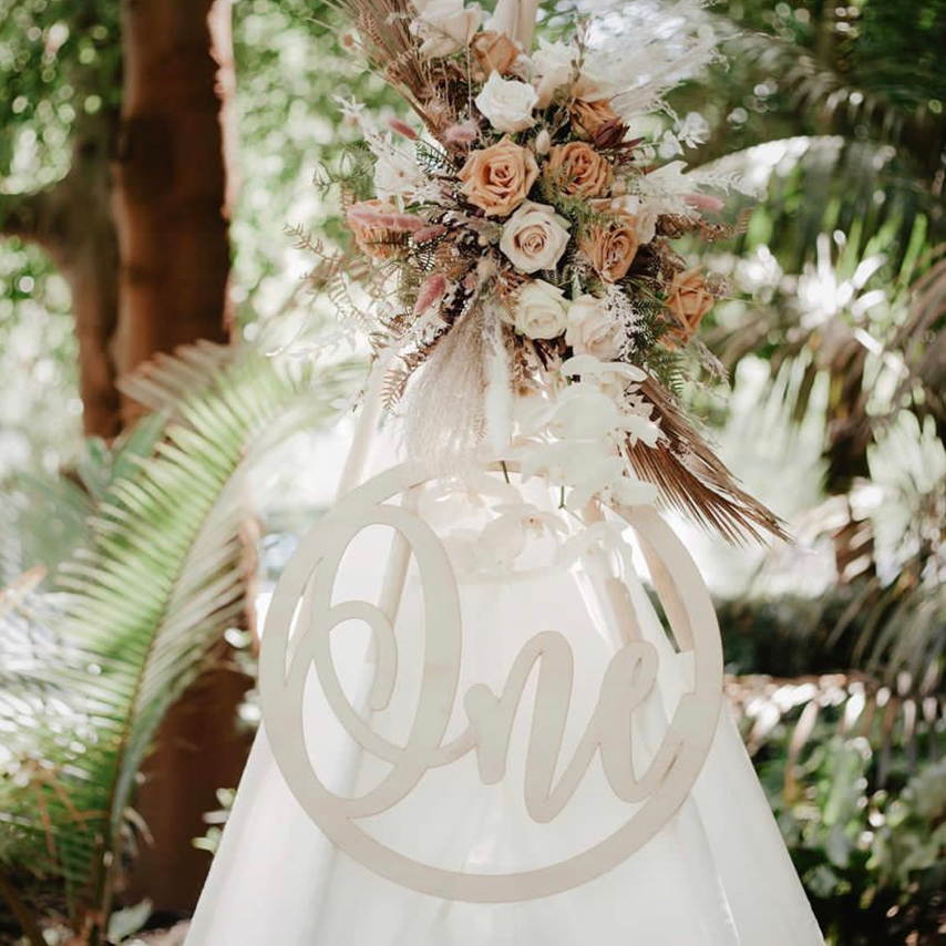 Hoop signage is so on trend. It's amazing how quickly you can transform a backdrop with a simple hoop sign. Add your own floral decor to take it to the next level. We have a selection of designs to choose from, then select your material and voila, a beautiful decorative piece is coming your way.