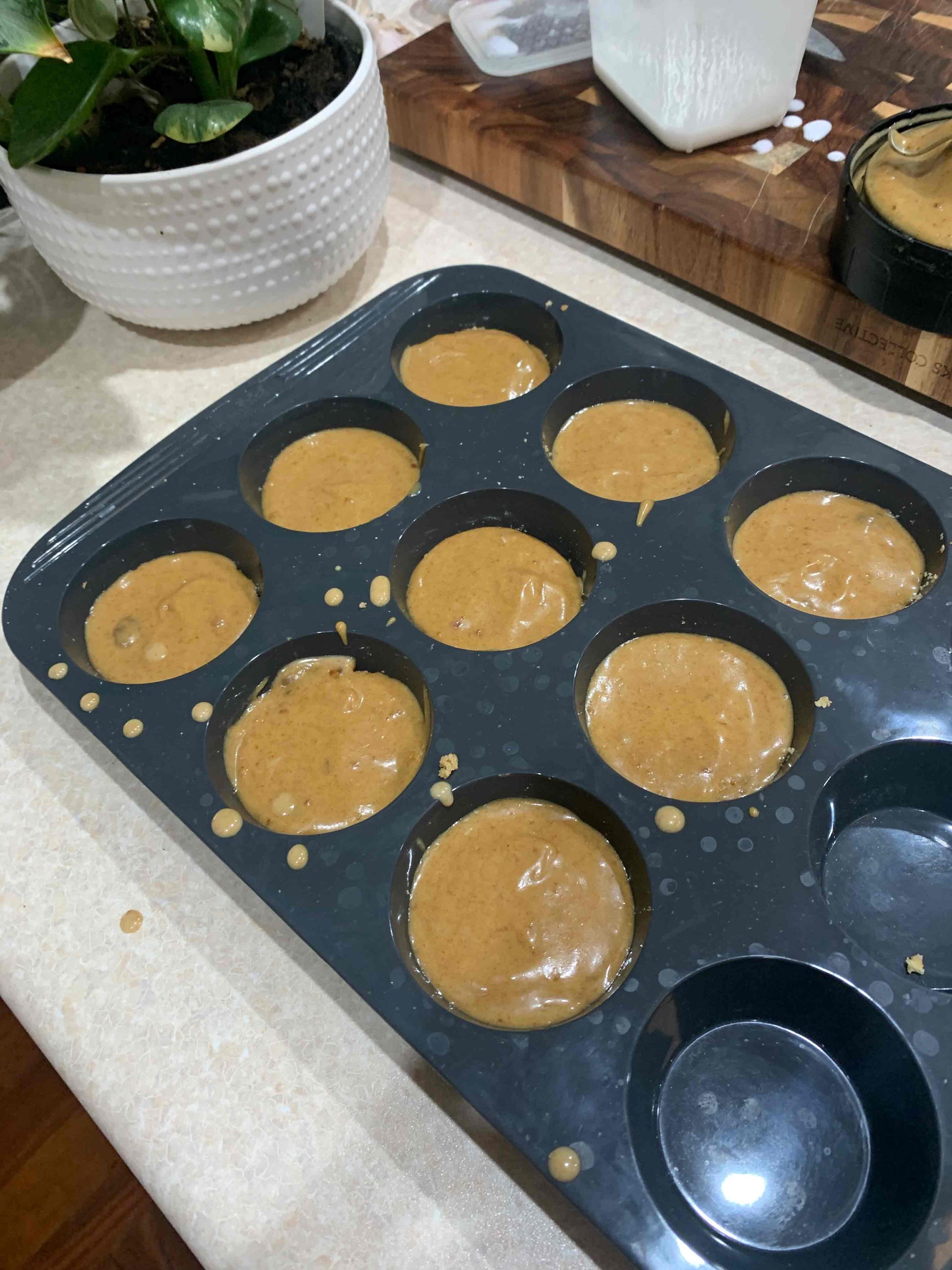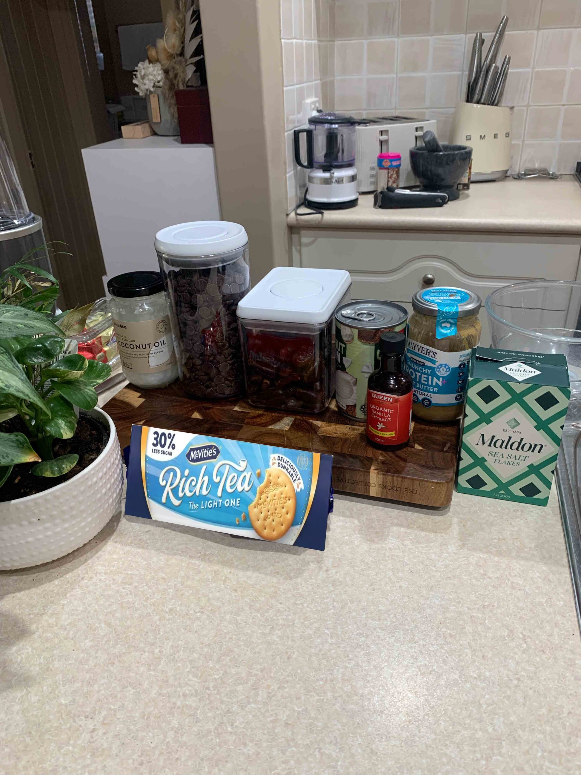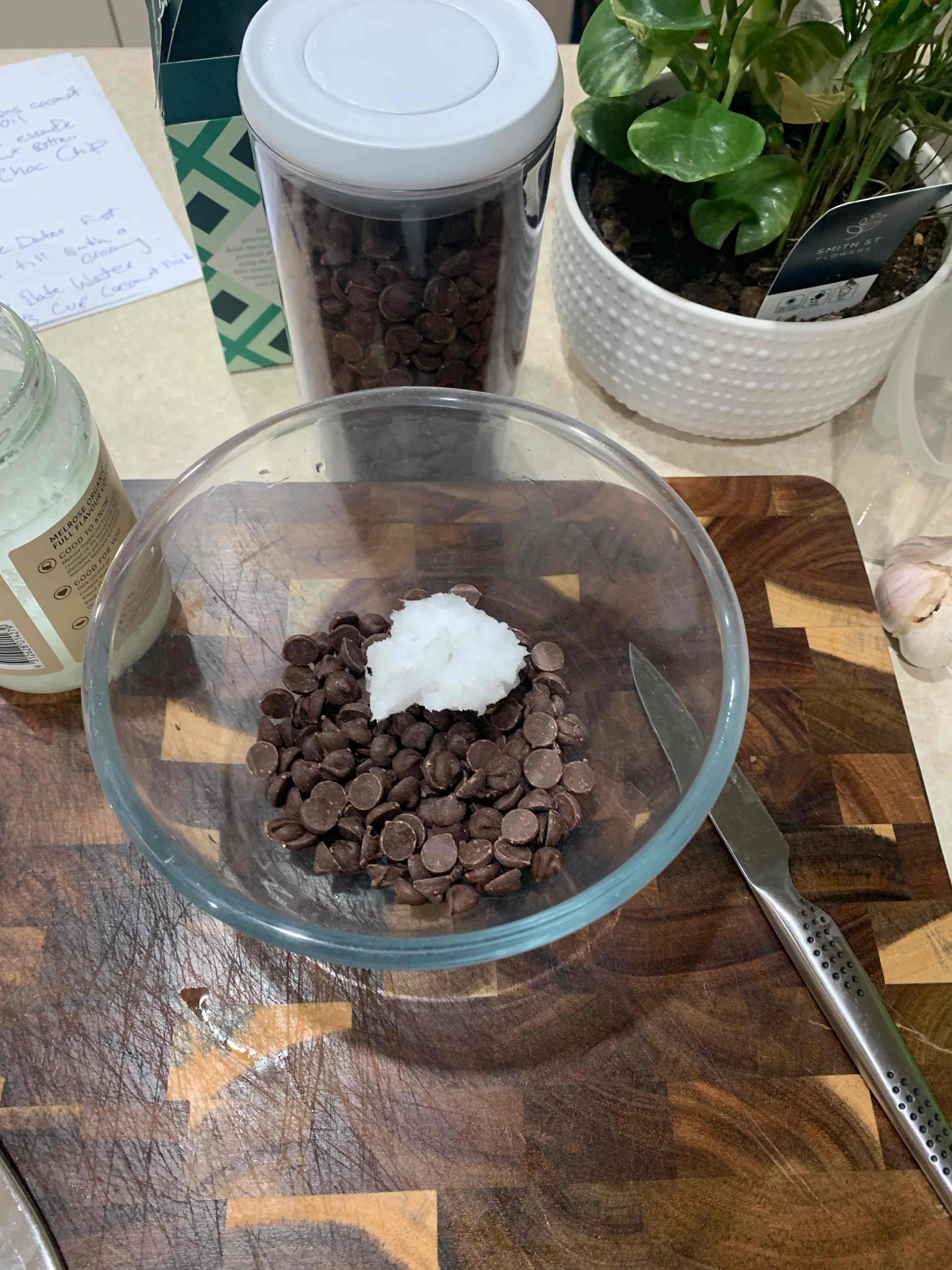 3. Melt 2 sml table spoons of coconut oil. Combine with biscuit crumb. Add to silicone moulds and flatten/compress the crumbs with a utensil.