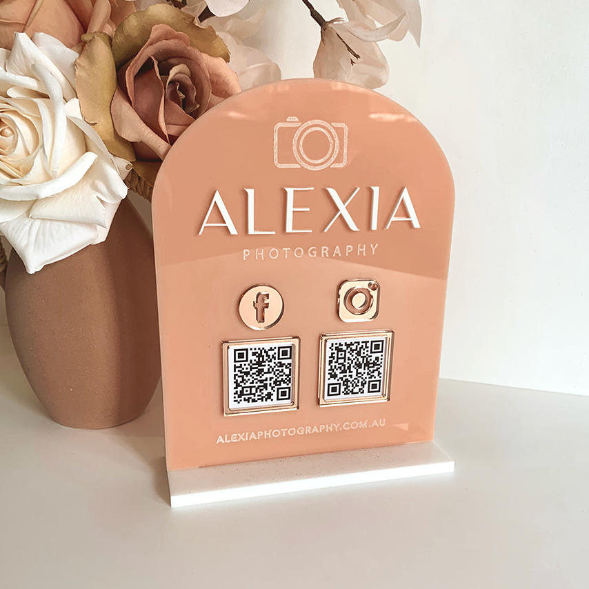 - Social Stand with 2 QR codes of your choice